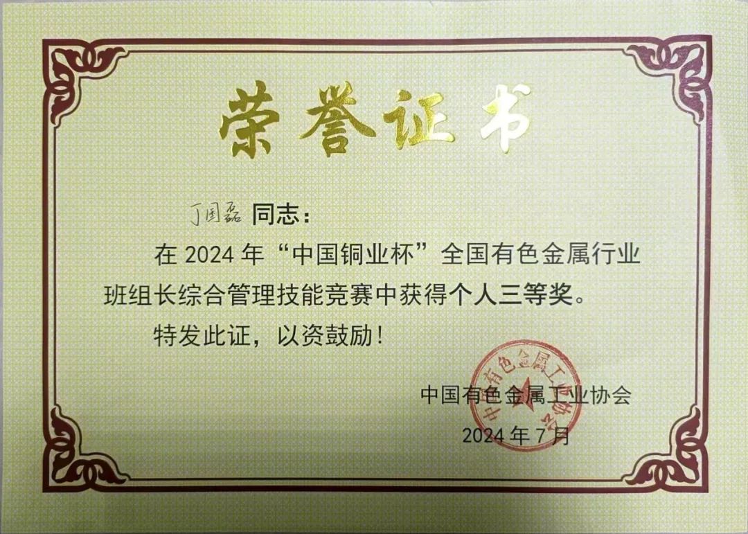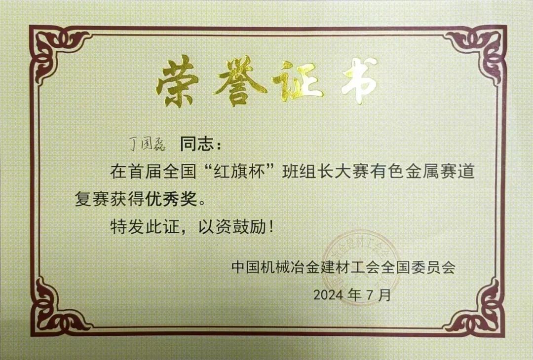 近日,首屆全國(guó)“紅旗杯”班組長(zhǎng)大賽有色金屬賽道復(fù)賽暨2024年“中國(guó)銅業(yè)杯”全國(guó)有色金屬行業(yè)班組長(zhǎng)綜合管理技能競(jìng)賽圓滿落幕,中色東方職工丁國(guó)磊榮獲“紅旗杯”優(yōu)秀獎(jiǎng),并在“中國(guó)銅業(yè)杯”競(jìng)賽中,榮獲三等獎(jiǎng)。