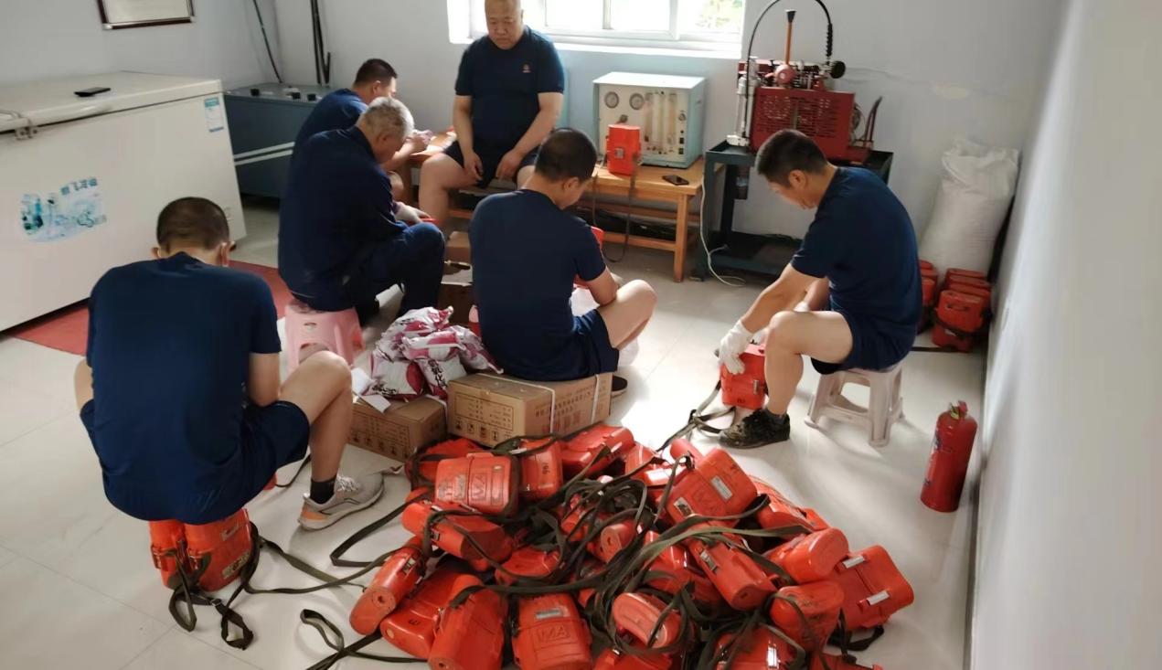中色紅透山救護(hù)隊(duì)青年黨員正在維修井下自救器