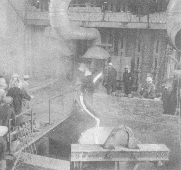 1960年4月6日,中色大冶迎來了第一代爐——反射爐點(diǎn)火的神圣時(shí)刻;4月22日下午2點(diǎn),第一包冰銅放滿;4月23日,冶煉廠反射爐順利放出第一爐冰銅。