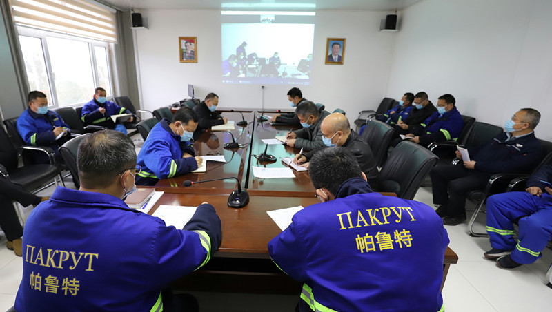 會議首先再次深入學(xué)習(xí)了集團(tuán)公司董事長奚正平關(guān)于加強(qiáng)境外企業(yè)常態(tài)化疫情防控工作的指示精神以及常青副總經(jīng)理關(guān)于做好海外疫情防控的工作要求。帕魯特現(xiàn)場防疫負(fù)責(zé)人介紹了當(dāng)前國際國內(nèi)及塔吉克疫情趨勢,分析了公司防疫形勢,并就當(dāng)前疫情防控工作進(jìn)行了安排。中色國礦總經(jīng)理張輝對公司疫情防控工作提出了具體要求。