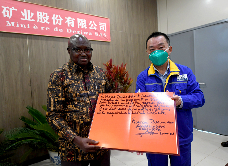 近日,剛果民主共和國駐中國特命全權(quán)大使弗朗索瓦?恩庫納?巴盧穆埃內(nèi)到中國有色集團(tuán)出資企業(yè)迪茲瓦礦業(yè)股份有限公司(簡稱:中色迪茲瓦)開展調(diào)研考察,盛贊中色迪茲瓦為剛中合作的典范。中色迪茲瓦董事長張士利,總裁楊黎升等陪同考察。