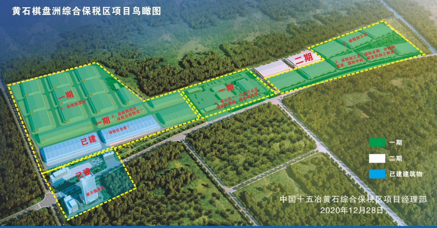 黃石棋盤洲綜合保稅區(qū)項目是中色十五冶以F+EPC模式承建的又一國家級重點(diǎn)建設(shè)項目,用地面積約0.964平方公里,總建筑面積約39萬平方米,一期總建筑面積約13萬平方米,二期總建筑面積約26萬平方米,該項目總投資約14億元(一期8億元,二期6億元)。