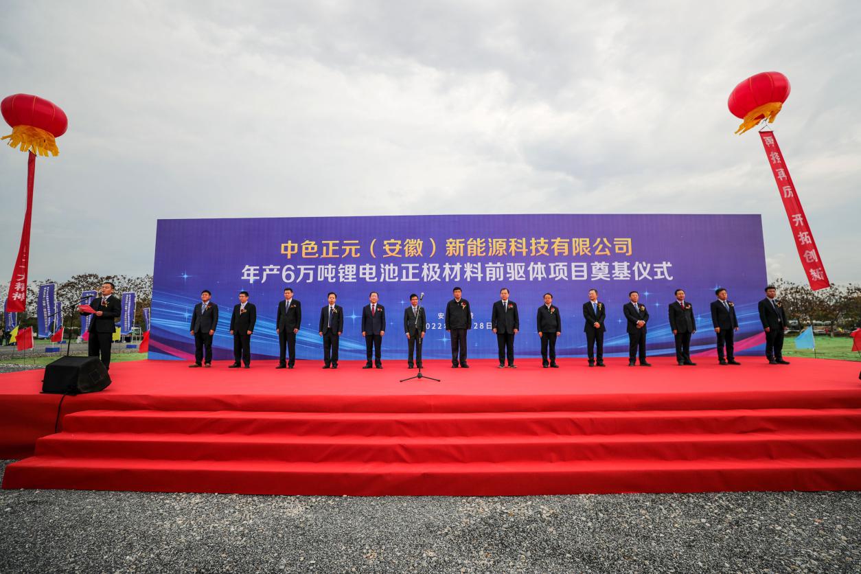 11月28日上午,由中國(guó)有色集團(tuán)和廈門(mén)鎢業(yè)共同投資建設(shè)的年產(chǎn)6萬(wàn)噸鋰電正極材料前驅(qū)體項(xiàng)目在銅陵經(jīng)濟(jì)技術(shù)開(kāi)發(fā)區(qū)東部園區(qū)舉行奠基儀式。安徽省副省長(zhǎng)何樹(shù)山出席奠基儀式,銅陵市委書(shū)記丁純、廈門(mén)鎢業(yè)黨委書(shū)記、董事長(zhǎng)黃長(zhǎng)庚、中國(guó)有色集團(tuán)黨委書(shū)記、董事長(zhǎng)奚正平先后致辭。奠基儀式由銅陵市市長(zhǎng)孔濤主持。