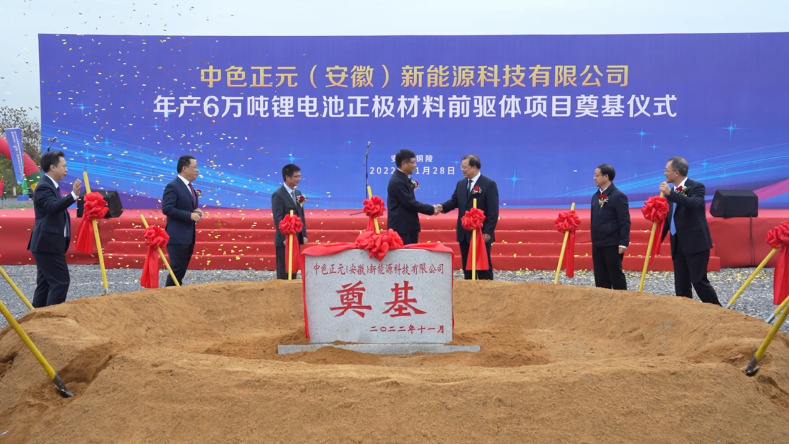 11月29日上午,中色正元(安徽)新能源科技有限公司舉行揭牌儀式。中國(guó)有色集團(tuán)黨委書(shū)記、董事長(zhǎng)奚正平,總經(jīng)理張晉軍,廈門(mén)鎢業(yè)黨委書(shū)記、董事長(zhǎng)黃長(zhǎng)庚,銅陵市市長(zhǎng)孔濤共同為公司揭牌。
