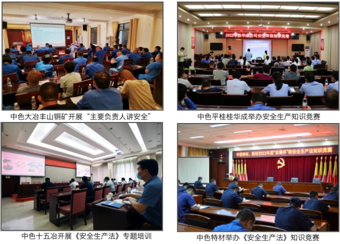 中國有色集團(tuán)積極響應(yīng)全國安全月組委會辦公室有關(guān)要求,組織廣大干部職工參與“新安法知多少”網(wǎng)絡(luò)知識競賽,以賽促學(xué)、學(xué)賽結(jié)合,宣傳普及安全生產(chǎn)法律知識,提高全員安全意識和安全素養(yǎng),截至6月15日,已有近1萬人參與競賽活動。同時(shí),各出資企業(yè)結(jié)合實(shí)際,組織開展了形式多樣、內(nèi)容豐富的《安全生產(chǎn)法》宣傳教育活動,扎實(shí)推進(jìn)安全宣傳進(jìn)企業(yè)、進(jìn)家庭。