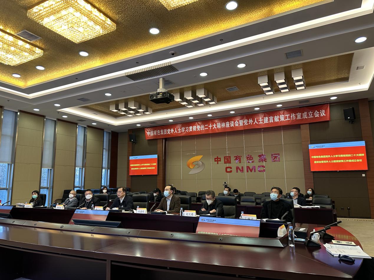 12月29日,中國有色集團“開黨外人士學(xué)習(xí)貫徹黨的二十大精神座談會暨黨外人士建言獻策工作室成立會議”在京召開。會議深入學(xué)習(xí)貫徹黨的二十大精神,全面貫徹落實中央統(tǒng)戰(zhàn)工作會議精神,成立集團公司黨外人士建言獻策工作室,聽取各方面黨外人士代表在學(xué)習(xí)黨的二十大精神、建言獻策工作室建設(shè)、推動統(tǒng)戰(zhàn)工作發(fā)展等方面的體會認識和意見建議,分析當前形勢,安排部署下一步統(tǒng)戰(zhàn)工作。中國有色集團董事長、黨委書記奚正平出席會議并講話。