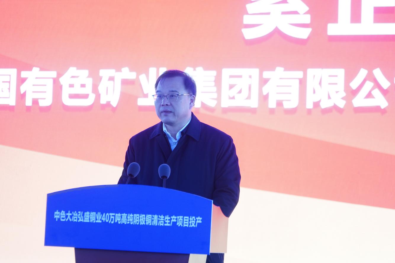 中國(guó)有色集團(tuán)黨委副書記、總經(jīng)理張晉軍主持投產(chǎn)活動(dòng)