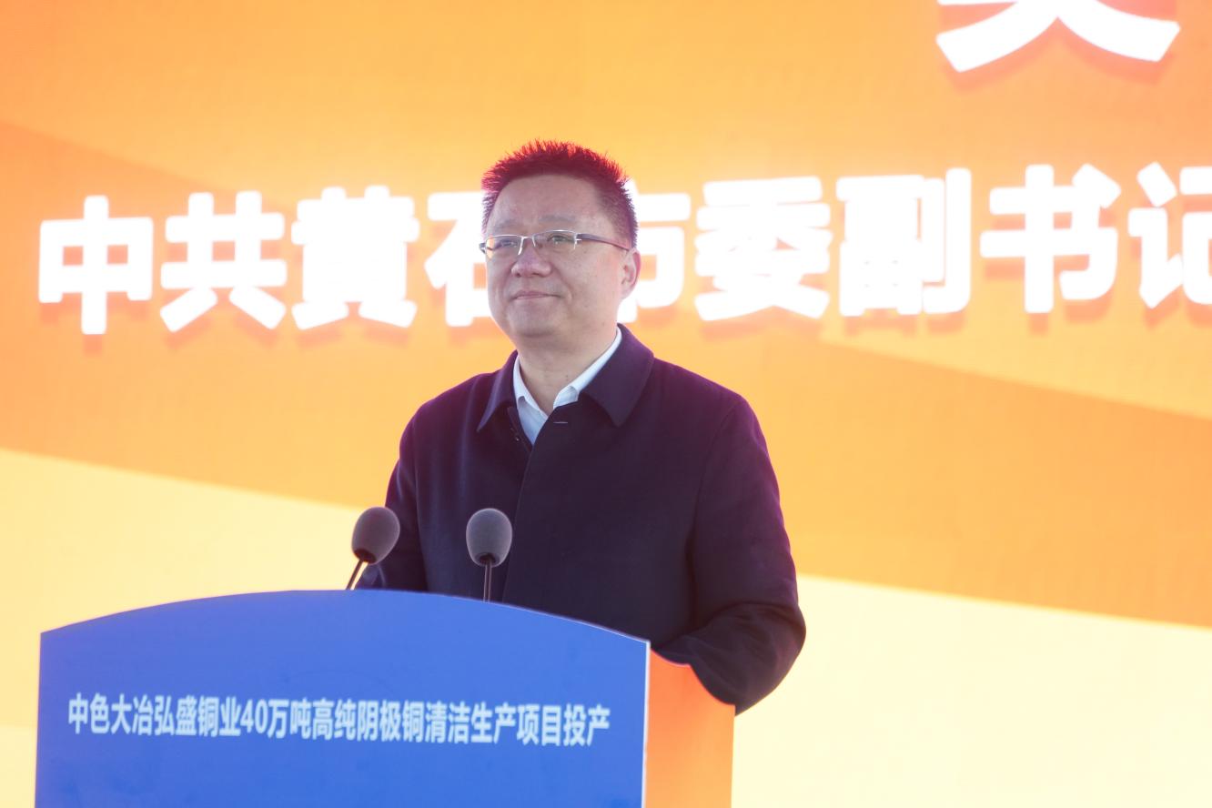 奚正平代表中國(guó)有色集團(tuán)向黃石市委市政府和合作伙伴給予中國(guó)有色集團(tuán)和中色大冶的關(guān)心和支持表示衷心感謝。他表示,弘盛銅業(yè)40萬噸高純陰極銅清潔生產(chǎn)項(xiàng)目正式投產(chǎn),吹響了邁向銅產(chǎn)業(yè)第一方陣的前進(jìn)號(hào)角。中色大冶要接續(xù)奮斗、砥礪奮進(jìn),以安全生產(chǎn)為前提、強(qiáng)化管理為基礎(chǔ)、改革創(chuàng)新為抓手,早日實(shí)現(xiàn)滿負(fù)荷正常運(yùn)營(yíng),全面奪取項(xiàng)目達(dá)產(chǎn)達(dá)標(biāo)的新勝利;要立足最佳、做強(qiáng)做優(yōu),發(fā)揮頭雁效應(yīng)、對(duì)標(biāo)世界先進(jìn),著力打造世界先進(jìn)水平的銅冶煉項(xiàng)目新標(biāo)桿;要不忘初心、牢記使命,以綠色高質(zhì)量發(fā)展彰顯央企的責(zé)任擔(dān)當(dāng)。