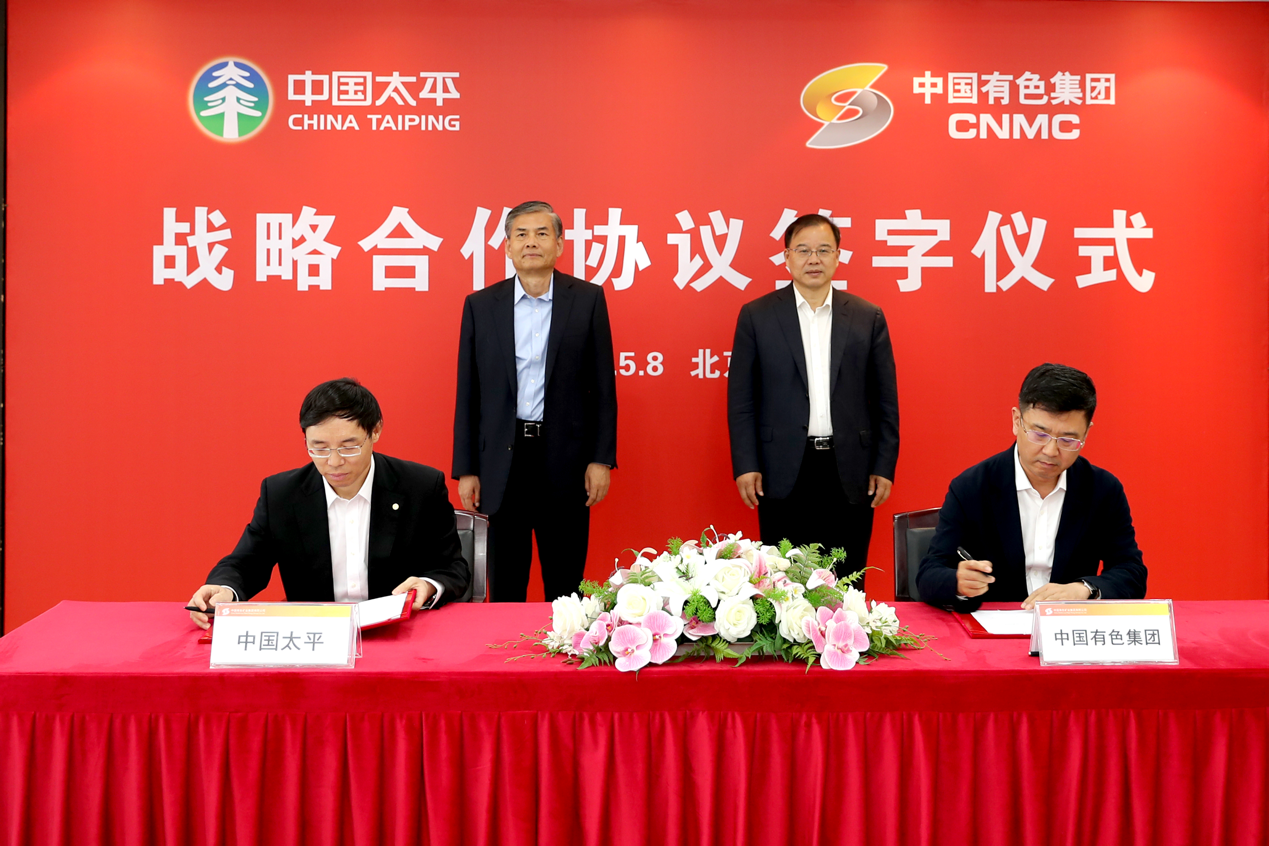 5月8日,中國(guó)有色集團(tuán)與中國(guó)太平保險(xiǎn)集團(tuán)有限責(zé)任公司(以下簡(jiǎn)稱(chēng)“中國(guó)太平”)戰(zhàn)略合作協(xié)議簽約儀式在中國(guó)有色大廈舉行。中國(guó)有色集團(tuán)黨委書(shū)記、董事長(zhǎng)奚正平和中國(guó)太平黨委書(shū)記、董事長(zhǎng)王思東現(xiàn)場(chǎng)見(jiàn)證簽約,中國(guó)有色集團(tuán)總經(jīng)理張晉軍主持簽約儀式,總會(huì)計(jì)師安宜與中國(guó)太平副總經(jīng)理朱捷分別代表雙方在協(xié)議上簽字。