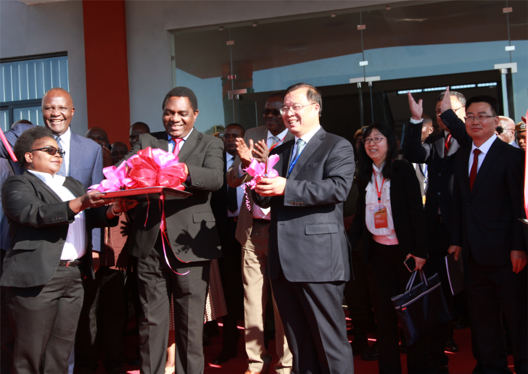 中贊職院新校區(qū)竣工剪彩儀式為論壇拉開序幕。希奇萊馬總統(tǒng)、中國有色集團(tuán)董事長奚正平共同為中贊職院新校區(qū)竣工剪彩。