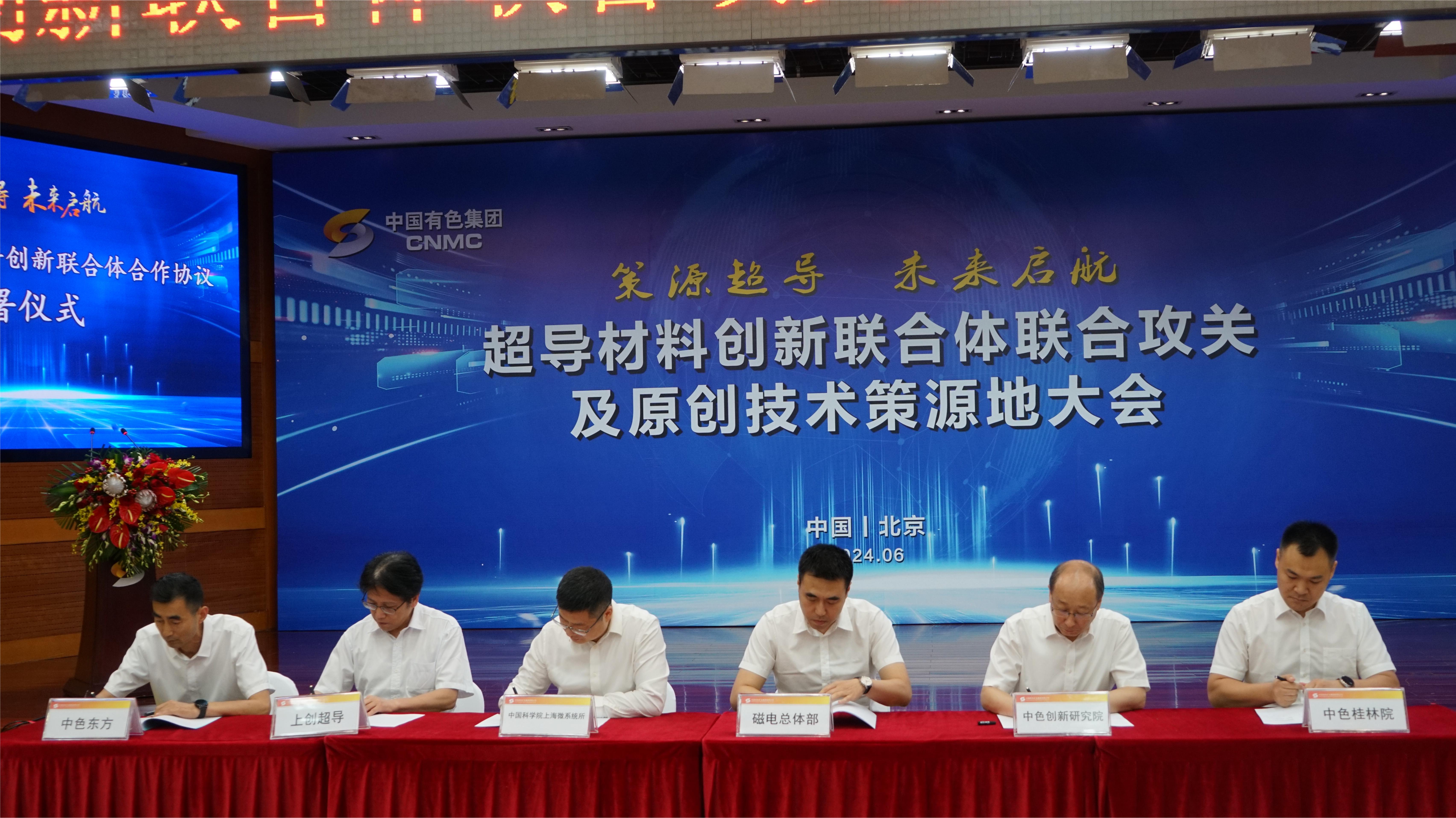 會(huì)議期間,集團(tuán)公司黨委委員、總會(huì)計(jì)師安宜宣讀了聘請(qǐng)超導(dǎo)材料創(chuàng)新聯(lián)合體學(xué)術(shù)顧問委員、學(xué)術(shù)專家委員名單。中國有色集團(tuán)黨委委員、副總經(jīng)理范巍發(fā)布了創(chuàng)新聯(lián)合體工作機(jī)制倡議。超導(dǎo)材料創(chuàng)新聯(lián)合體8家央企,12家科研院所、高校和7家地方企業(yè)共同發(fā)起超導(dǎo)材料創(chuàng)新聯(lián)合體工作機(jī)制倡議。超導(dǎo)材料創(chuàng)新聯(lián)合體成員單位成功簽署了7項(xiàng)技術(shù)攻關(guān)和產(chǎn)業(yè)化合作協(xié)議。