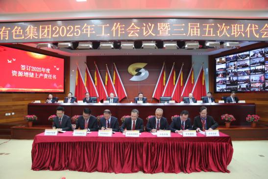 ??1月14日至15日,中國有色集團召開2025年工作會議暨三屆五次職工代表大會,全面貫徹黨的二十大和二十屆二中、三中全會精神以及中央經(jīng)濟工作會議、中央企業(yè)負責(zé)人會議精神,總結(jié)2024年工作,研究部署2025年重點工作,加快高質(zhì)量發(fā)展步伐。中國有色集團黨委書記、董事長文崗講話,黨委副書記、總經(jīng)理張晉軍作工作報告,黨委委員、副總經(jīng)理常青傳達了國資委中央企業(yè)負責(zé)人會議精神,黨委委員、副總經(jīng)理王焱作安全環(huán)保工作報告。國家審計署企業(yè)審計三局局長張京奕出席會議并講話,集團公司外部董事張逢春、呂波出席會議。