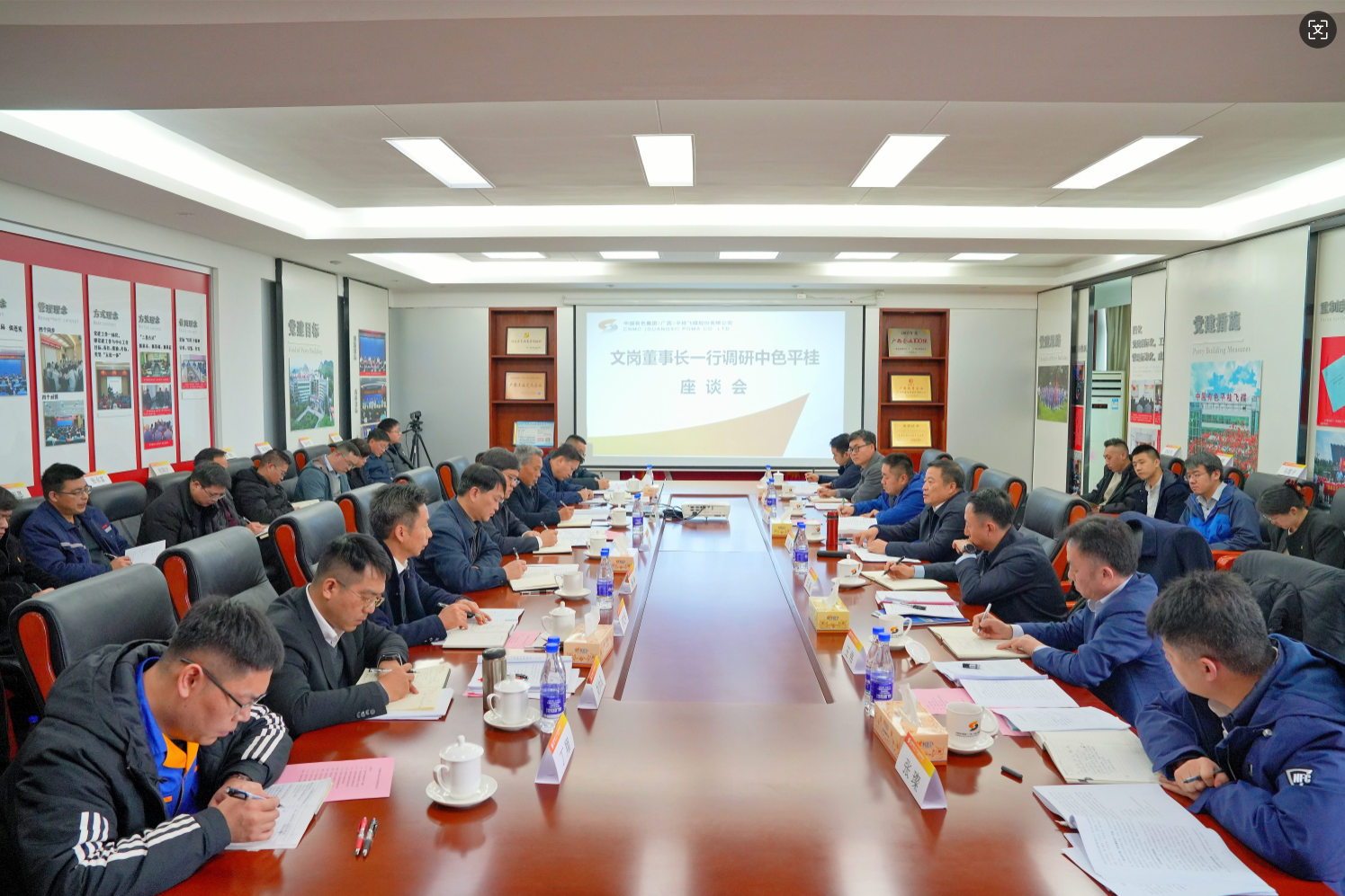 調(diào)研期間,文崗一行深入鎢業(yè)公司、桂華成公司生產(chǎn)現(xiàn)場,詳細(xì)了解了中色平桂改革發(fā)展歷程、生產(chǎn)經(jīng)營、科研及產(chǎn)業(yè)發(fā)展、安全環(huán)保等情況,并主持召開工作座談會。