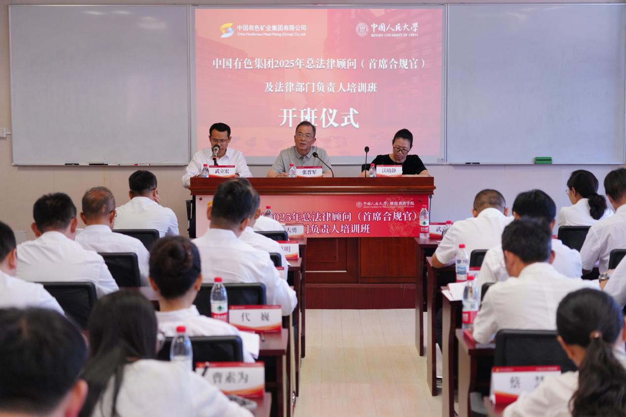 9月8日,中國(guó)有色集團(tuán)2025年總法律顧問(wèn)(首席合規(guī)官)及法律部門(mén)負(fù)責(zé)人培訓(xùn)班在中國(guó)人民大學(xué)正式開(kāi)班。中國(guó)人民大學(xué)法學(xué)院黨委書(shū)記沃曉靜出席并致辭。集團(tuán)公司黨委副書(shū)記、總經(jīng)理張晉軍出席開(kāi)班儀式并講話。