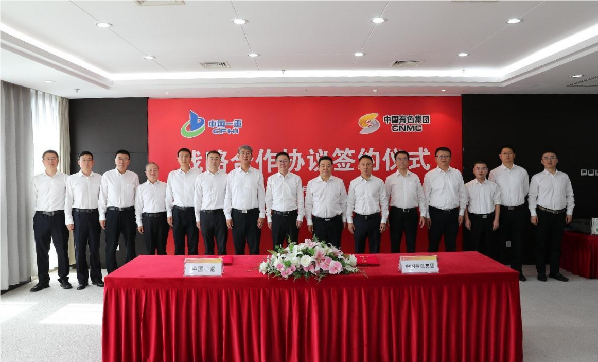 9月26日,中國(guó)有色集團(tuán)與中國(guó)一重簽署戰(zhàn)略合作協(xié)議,中國(guó)有色集團(tuán)黨委書記、董事長(zhǎng)文崗,中國(guó)一重集團(tuán)黨委書記、董事長(zhǎng)呂智強(qiáng)現(xiàn)場(chǎng)見證簽約。中國(guó)有色集團(tuán)黨委委員、副總經(jīng)理王焱,中國(guó)一重集團(tuán)黨委常委、副總經(jīng)理張皓代表雙方簽約。