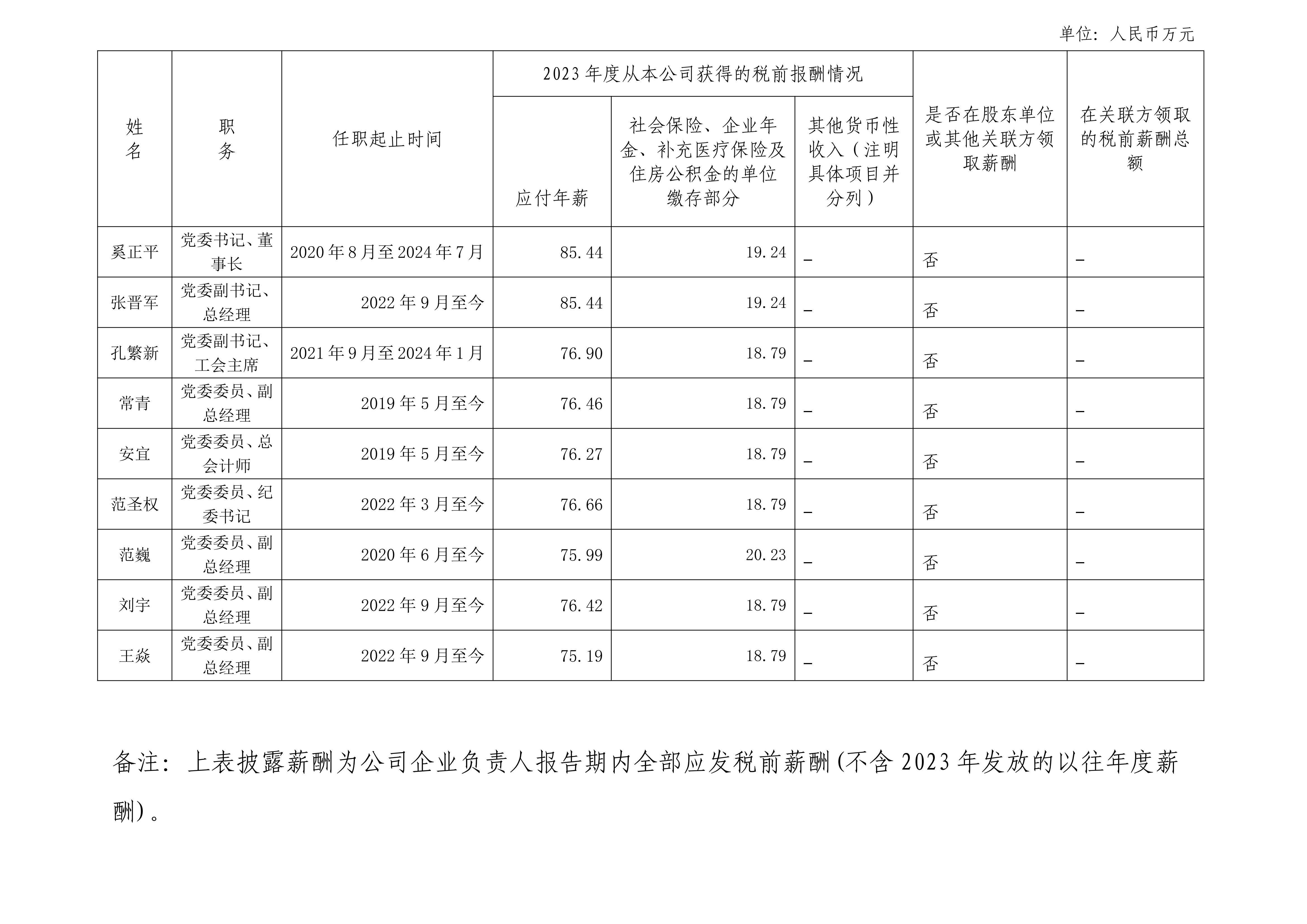 中國有色礦業(yè)集團有限公司企業(yè)負責人2023年度薪酬情況??