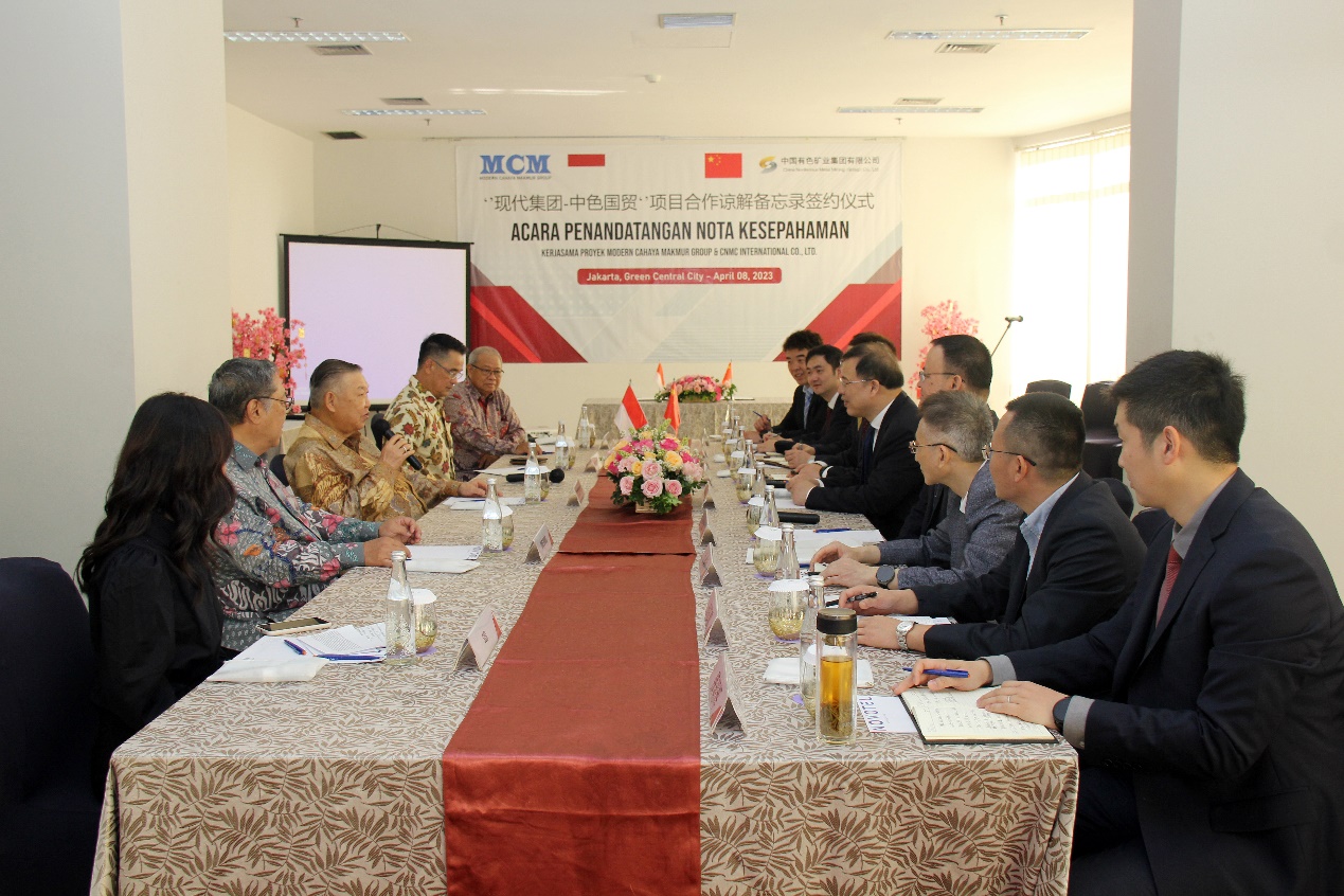在印尼期間,奚正平董事長一行拜訪了印尼Modern集團,對Modern集團的發(fā)展及現(xiàn)狀、印尼礦產(chǎn)資源、經(jīng)濟產(chǎn)業(yè)情況進行了深入交流,出席了“現(xiàn)代集團-中色國貿(mào)”項目合作諒解備忘錄簽約儀式。工作組一行對Modern雅加達Cikende工業(yè)園進行了實地考察。