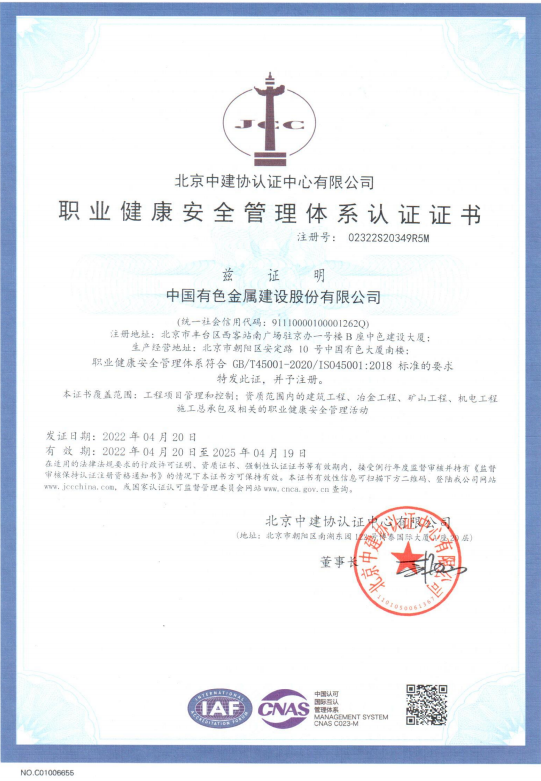 China Nonferrous Metal Industry's Foreign Engineering and Construction Co., Ltd. JGWAB 11010502019766 Beijing ICP Registration 10052038