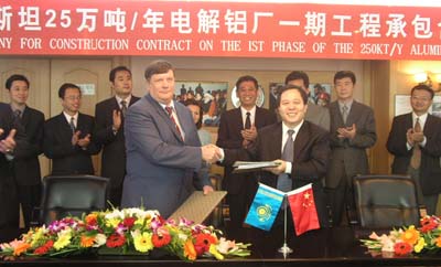 On October 10, 2005, the contract signing ceremony on Kazakhstan Aluminum Smelter Project between NFC and Kazakhstan Aluminum Smelter Joint-Stock Company was held in Beijing. According to the contract whose total value is about RMB 2.4 billion, NFC will undertake construction and installation, as well as equipment supply. Mr. Luo Tao, NFC’s chairman of the board, attended the ceremony with the first vice-president of Kazakhstan Aluminum Smelter JSC, Mr. Ganauer. Mr. Wang Hongqian, president of NFC, signed the contract on behalf of NFC.