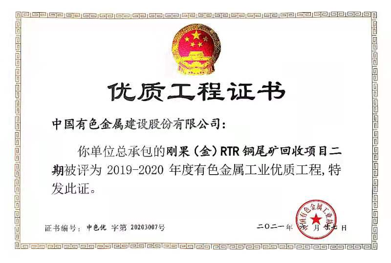 剛果(金)RTR項目榮獲2019-2020年度中國有...