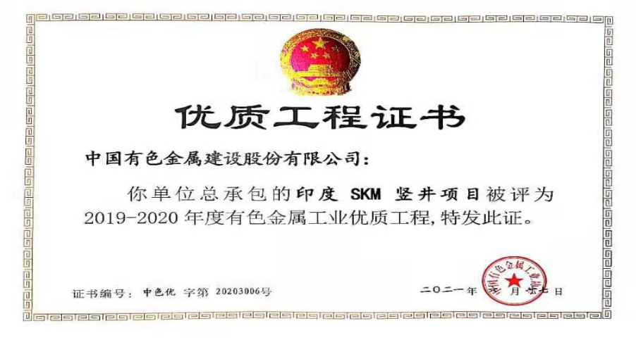印度SKM項目榮獲2019-2020年度中國有色金屬...
