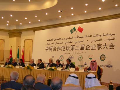 中阿企業(yè)家大會是中阿合作論壇框架下的常設機構,每兩年舉辦一次,首屆“中阿合作論壇企業(yè)家大會”于2005年4月在北京舉行,全國政協(xié)主席賈慶林出席并發(fā)表了重要講話,在中阿各國企業(yè)間引起了熱烈反響。此次在安曼召開的第二屆中阿企業(yè)家大會,得到了雙方政府部門和企業(yè)家的高度重視,全國政協(xié)副主席羅豪才、中國貿(mào)促會會長萬季飛、中國商務部部長助理陳健以及約旦副首相兼財政大臣法里茲、阿拉伯企業(yè)家聯(lián)合會主席塔巴等出席大會開幕式并致辭,近千名中阿企業(yè)家參加了會議。約旦國王阿卜杜拉二世在6月18日開幕式后專門會見了由羅豪才先生帶隊的中國企業(yè)家代表團部分成員一行二十余人,王宏前總經(jīng)理作為中方企業(yè)家代表謁見了國王陛下。
