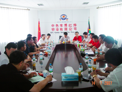 2007年7月13日至15日,中國(guó)有色礦業(yè)集團(tuán)公司總經(jīng)理、中色股份公司董事長(zhǎng)羅濤、中色股份總經(jīng)理王宏前、中色股份公司黨委書記、副總經(jīng)理謝亞衡等一行來到赤峰中色庫(kù)博紅燁鋅業(yè)有限公司檢查指導(dǎo)工作。