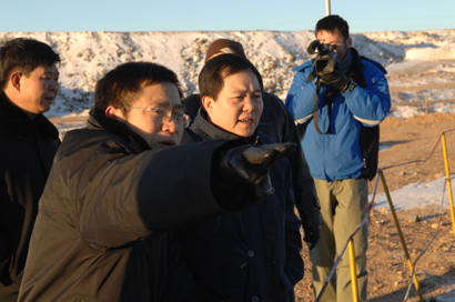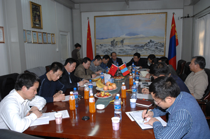12月31日晚,王總一行經(jīng)過十余個小時的長途跋涉,來到荒漠中的敖包鋅礦。2008年1月1日清晨,王總一行不顧旅途勞頓和零下20多度的嚴寒天氣,按照當(dāng)?shù)仫L(fēng)俗習(xí)慣,祭拜了圖木爾廷-敖包;隨后參觀了采礦場、選礦碎礦車間、磨浮車間、精礦車間、鍋爐房等生產(chǎn)工藝流程,察看了總降變電站、安全生產(chǎn)室、員工宿舍和蔬菜大棚,慰問了節(jié)日期間堅守在生產(chǎn)崗位上的中蒙員工。