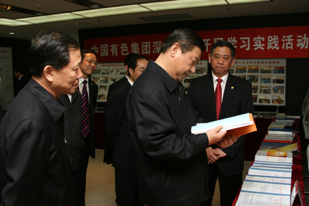 習(xí)近平副主席仔細(xì)翻看中國(guó)有色集團(tuán)學(xué)習(xí)實(shí)踐活動(dòng)簡(jiǎn)報(bào)
