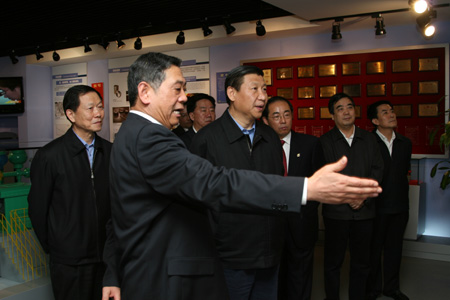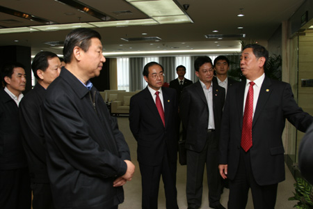 [編者按] 2009年4月13日,中共中央政治局常委、中央書(shū)記處書(shū)記、國(guó)家副主席、中央深入學(xué)習(xí)實(shí)踐科學(xué)發(fā)展觀活動(dòng)領(lǐng)導(dǎo)小組組長(zhǎng)習(xí)近平同志來(lái)到位于北京市朝陽(yáng)區(qū)安定路10號(hào)的中國(guó)有色集團(tuán),就中央企業(yè)深入開(kāi)展學(xué)習(xí)實(shí)踐活動(dòng)進(jìn)行調(diào)研。陪同的領(lǐng)導(dǎo)同志有:中央學(xué)習(xí)實(shí)踐活動(dòng)領(lǐng)導(dǎo)小組成員兼辦公室主任、中央組織部副部長(zhǎng)歐陽(yáng)淞,中央學(xué)習(xí)實(shí)踐活動(dòng)領(lǐng)導(dǎo)小組成員、中央企業(yè)學(xué)習(xí)實(shí)踐活動(dòng)領(lǐng)導(dǎo)小組組長(zhǎng)、國(guó)務(wù)院國(guó)有資產(chǎn)監(jiān)督管理委員會(huì)主任李榮融,中央企業(yè)學(xué)習(xí)實(shí)踐活動(dòng)領(lǐng)導(dǎo)小組副組長(zhǎng)、中央組織部副部長(zhǎng)王爾乘,中央學(xué)習(xí)實(shí)踐活動(dòng)領(lǐng)導(dǎo)小組成員、中央政研室副主任何毅亭。