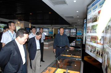 李文正先生一行興致勃勃地參觀了中色股份展廳,在每一幅展示中色股份業(yè)績的圖片前,李先生都是駐足觀看詳細詢問。了解了中色股份在全球有色金屬工程承包和資源開發(fā)基本情況后,李先生發(fā)出由衷的贊嘆,并揮毫留下了“中色股份為祖國爭光”的題詞。