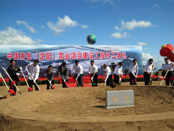 8月28日上午,艷陽高照,彩旗飄揚(yáng),鑼鼓喧天,禮炮齊鳴。中色股份控股的中國有色(沈陽)泵業(yè)有限公司(簡稱中色泵業(yè))隔膜泵項(xiàng)目開工奠基儀式在沈陽市經(jīng)濟(jì)技術(shù)開發(fā)區(qū)隆重舉行。