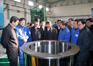 趙長義主任十分關(guān)注沈冶機械的發(fā)展,親切詢問了沈冶機械老領(lǐng)導的健康情況,詳細了解沈冶機械2010年生產(chǎn)經(jīng)營情況和未來三年發(fā)展規(guī)劃。他指出,沈冶機械研制的大型油膜軸承,曾替代進口,并榮獲國家質(zhì)量金獎,制鋁設(shè)備和隔膜泵產(chǎn)品都成為世界級的產(chǎn)品,特別是制鋁設(shè)備和冶礦設(shè)備走出國門,出口份額達到29%。這些好的產(chǎn)品和好的市場,為企業(yè)做強做大奠定了堅實基礎(chǔ)。他希望,沈冶機械再接再厲,轉(zhuǎn)變發(fā)展方式,調(diào)整產(chǎn)品結(jié)構(gòu),搭建合作平臺,加大投資改造力度,提高裝備水平,為沈陽裝備制造業(yè)的振興作出更大貢獻。沈陽市將為沈冶機械整體搬遷改造給予支持,提供優(yōu)惠政策。