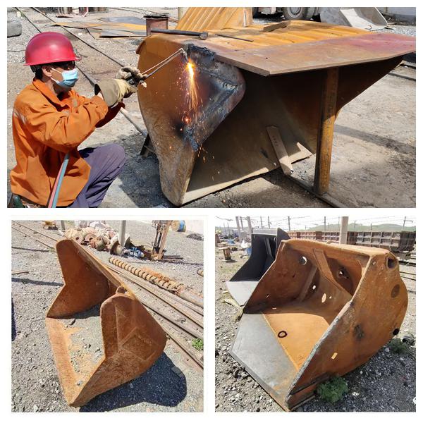 圖為采礦事業(yè)部修理師傅在精心修復(fù)翻新鏟斗