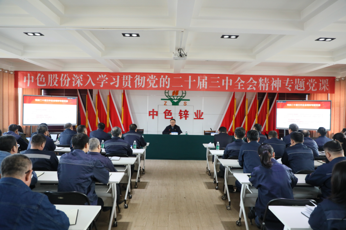 12月19日,根據(jù)公司黨委工作安排,中國有色集團(tuán)黨委委員、副總經(jīng)理,中色股份黨委書記、董事長劉宇同志到赤峰企業(yè)調(diào)研期間,結(jié)合企業(yè)經(jīng)營管理及改革發(fā)展實(shí)際,面向中色股份全級(jí)次黨員干部講授學(xué)習(xí)貫徹黨的二十屆三中全會(huì)精神專題黨課。