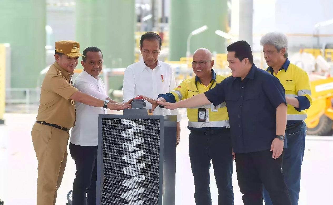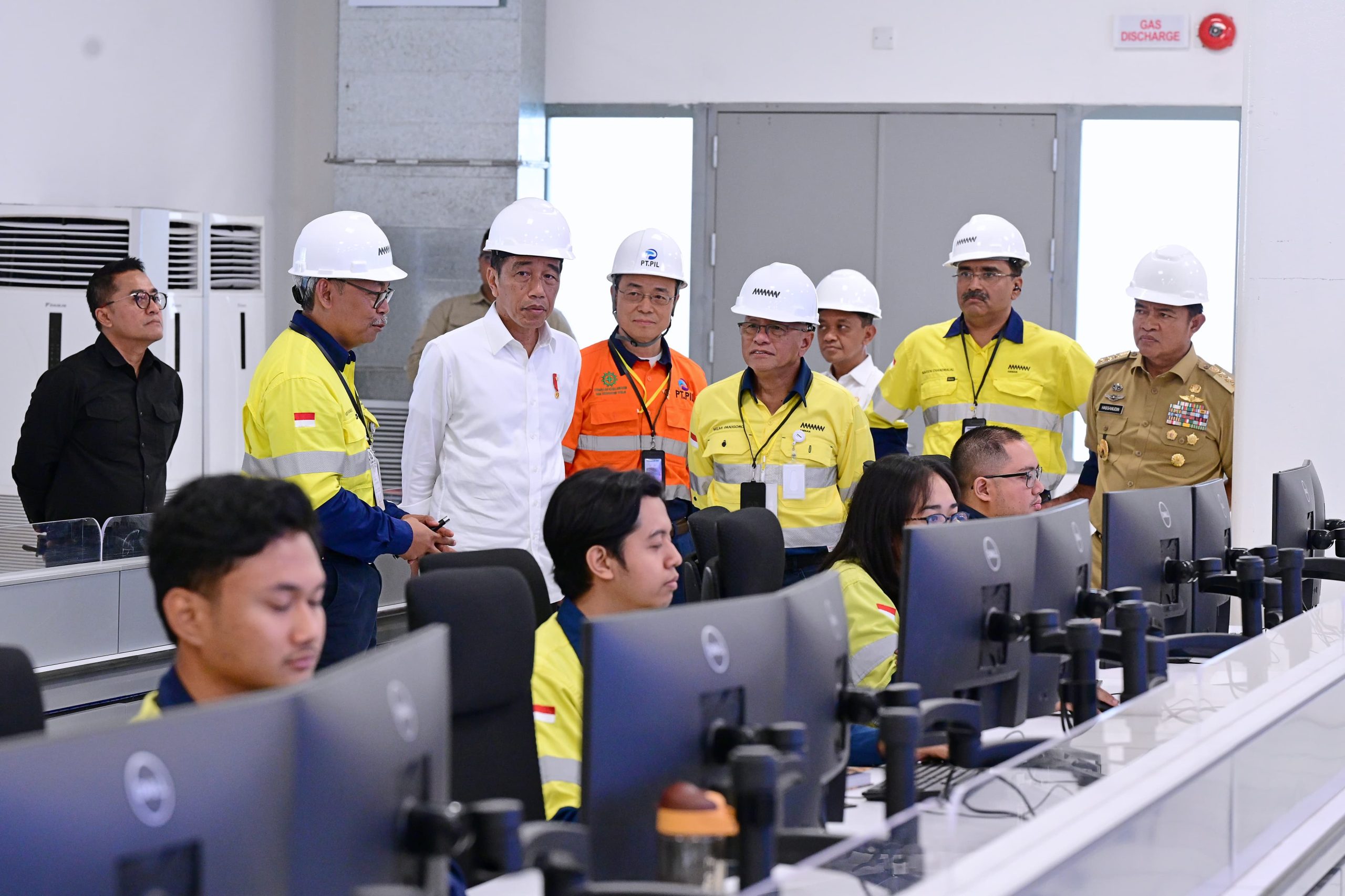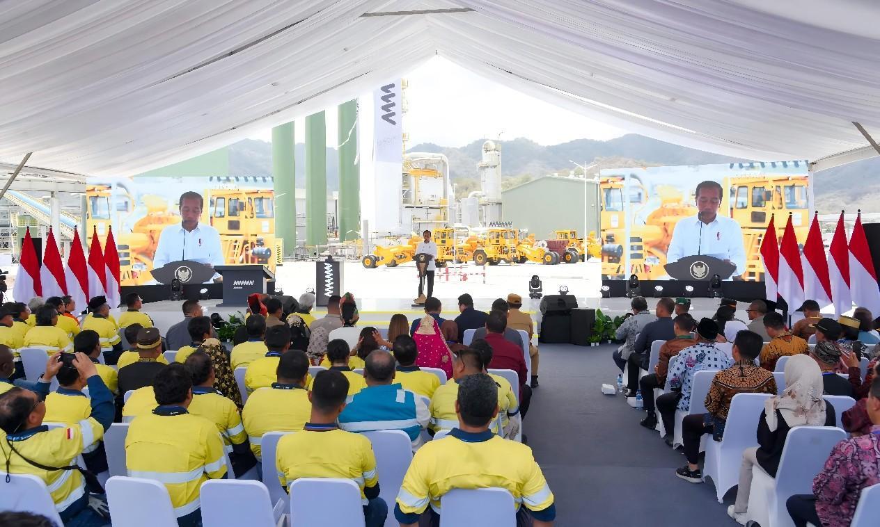 2024年9月23日上午,印度尼西亞總統(tǒng)佐科·維多多現(xiàn)場(chǎng)視察位于西努沙登加拉省松巴哇島的阿曼銅冶煉廠,參加落成典禮并宣布冶煉廠正式啟動(dòng)。中色股份總經(jīng)理秦軍滿(mǎn)與阿曼礦業(yè)公司烏金先生,阿古斯先生,以及董事納文先生及其團(tuán)隊(duì)陪同視察。